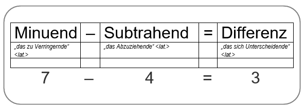 Die elementaren Fachbegriffe im Zusammenhang mit der Subtraktion dürften wohl den allermeisten von uns geläufig sein: