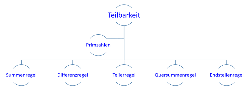 Abb.: «Ordnung der angesprochenen Teilbarkeitsregeln» (Andre Wiesener © die hauslehrer® GmbH & Co. KG)
